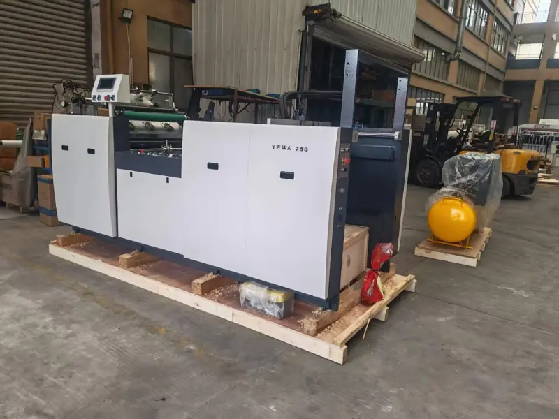 YFMA-760'ı paketliyoruzOtomatik Ön Kaplama Laminasyon Makinesi, Son olarak ahşap bir sandıkta paketlenecektir.